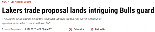 据美媒cluchpoints记者安东尼·欧文报道,洛杉矶湖人队的引援计划还远远没有结束,现在他们有意交易来芝加哥公牛队的后卫阿约·多森姆。